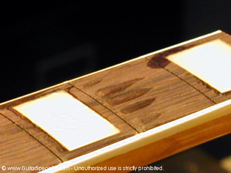 leveled and ready for frets. Those inlays hardy got a shave. |
